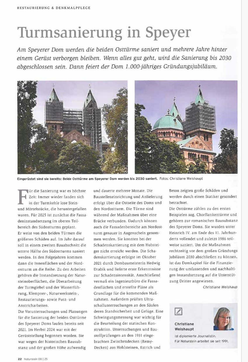 Wir freuen uns, dass unser Projekt am UNESCO-Weltkulturerbe Speyerer Dom in der Fachzeitschrift Naturstein vorgestellt wurde! 📰
